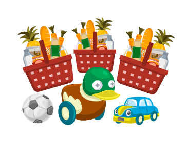 Arrecadação de brinquedos para doação à instituição de caridade.